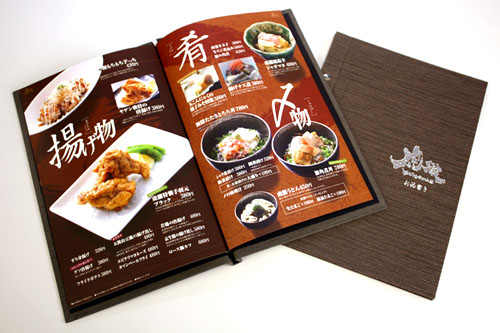 飲食店メニュー表 ○カバー/クロスタイプ・箔押し ○中面/全面フルカラー