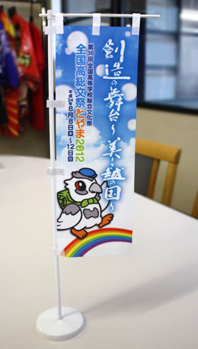works 制作実績 グラフィックデザイン CIプランニング・オリジナルキャラ ノベルティ・オリジナルグッズ 展示会・イベント販促商品 Webデザイン メディア広告・宣伝 記念式典・イベント設営 制作実績全国高総文祭とやま2012様 卓上のぼり 全国高総文祭とやま2012様 卓上のぼり client / 全国高合文祭とやま2012 date / 2012年8月1日 全国高総文祭とやま2012様 卓上のぼり