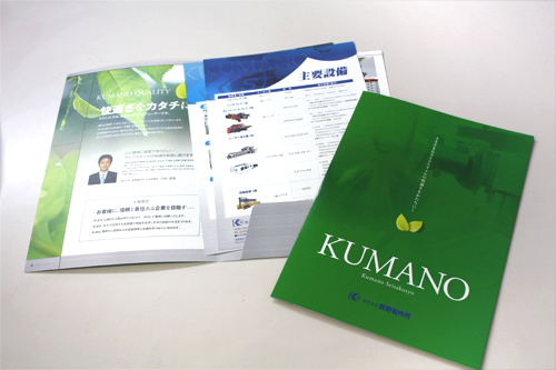 works 制作実績 グラフィックデザイン CIプランニング・オリジナルキャラ ノベルティ・オリジナルグッズ 展示会・イベント販促商品 Webデザイン メディア広告・宣伝 記念式典・イベント設営 制作実績(株)熊野製作所様 会社案内カバーホルダー (株)熊野製作所様 会社案内カバーホルダー client / (株)熊野製作所様 株式会社熊野製作所様 会社案内リーフレット&カバーホルダー A4サイズの2枚のリーフレットをカバーホルダーに入れて使用する会社案内です。