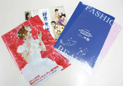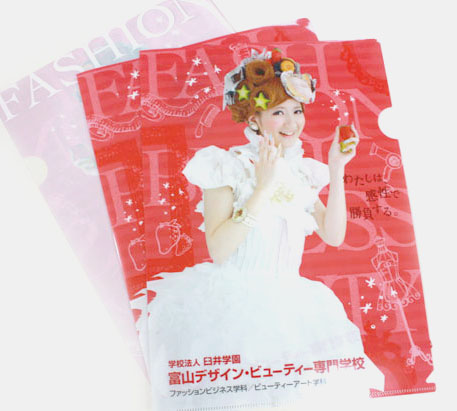works 制作実績 グラフィックデザイン CIプランニング・オリジナルキャラ ノベルティ・オリジナルグッズ 展示会・イベント販促商品 Webデザイン メディア広告・宣伝 記念式典・イベント設営 制作実績臼井学園様 クリアファイル 臼井学園様 クリアファイル client / 富山デザインビューティー専門学校 date / 2013年7月6日 臼井学園様 A4クリアファイル 種類がたくさんある臼井学園様の学科の中でも、ファッションビジネス学科・ ビューティー学科をPRするクリアファイルを制作させて頂きました。 学校案内のパンフレットとセットでご提案させて頂きました。 【クリアファイル 裏面など】