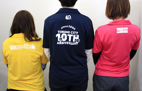 works 制作実績 グラフィックデザイン CIプランニング・オリジナルキャラ ノベルティ・オリジナルグッズ 展示会・イベント販促商品 Webデザイン メディア広告・宣伝 記念式典・イベント設営 制作実績砺波市 10周年記念ポロシャツ 砺波市 10周年記念ポロシャツ client / 砺波市 date / 2014年2月5日 砺波市 10周年記念ポロシャツを、背中は 3種類、胸元は共通でデザインを制作しました。