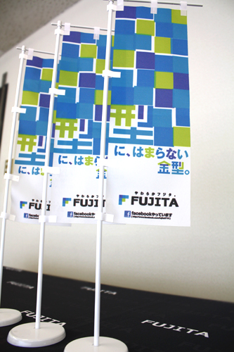 works 制作実績 グラフィックデザイン CIプランニング・オリジナルキャラ ノベルティ・オリジナルグッズ 展示会・イベント販促商品 Webデザイン メディア広告・宣伝 記念式典・イベント設営 制作実績フジタ テーブルクロス・卓上のぼり旗 他 フジタ テーブルクロス・卓上のぼり旗 他 client / 株式会社フジタ date / 2013年4月12日