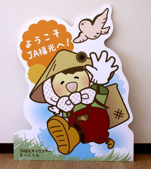 works 制作実績 グラフィックデザイン CIプランニング・オリジナルキャラ ノベルティ・オリジナルグッズ 展示会・イベント販促商品 Webデザイン メディア広告・宣伝 記念式典・イベント設営 制作実績JA福光 店頭パネルPOP JA福光 店頭パネルPOP client / 福光農業協同組合 date / 2013年10月21日 JA福光様 マスコットキャラクター「もへじくん」パネル 【サイズ】 最大幅…800mm 最大高さ…1040mm