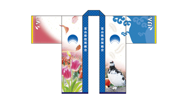 works 制作実績 グラフィックデザイン CIプランニング・オリジナルキャラ ノベルティ・オリジナルグッズ 展示会・イベント販促商品 Webデザイン メディア広告・宣伝 記念式典・イベント設営 制作実績富山県信用組合 / はっぴ 富山県信用組合 / はっぴ client / 富山県信用組合 date / 2017年7月26日
