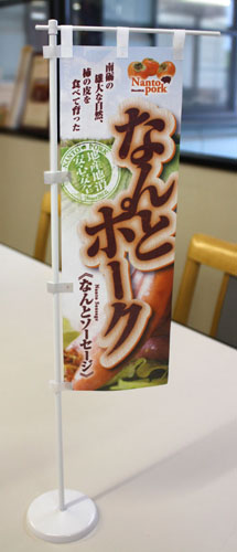 works 制作実績 グラフィックデザイン CIプランニング・オリジナルキャラ ノベルティ・オリジナルグッズ 展示会・イベント販促商品 Webデザイン メディア広告・宣伝 記念式典・イベント設営 制作実績なんとポーク ハッピ・卓上のぼり旗デザイン なんとポーク ハッピ・卓上のぼり旗デザイン client / なんとポーク date / 2012年8月1日