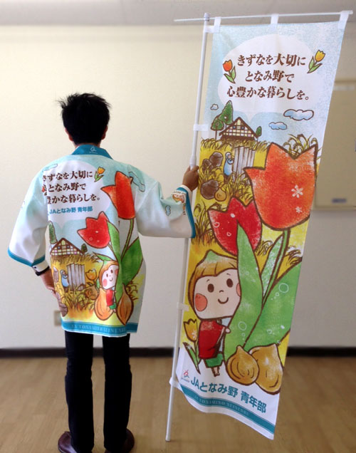 works 制作実績 グラフィックデザイン CIプランニング・オリジナルキャラ ノベルティ・オリジナルグッズ 展示会・イベント販促商品 Webデザイン メディア広告・宣伝 記念式典・イベント設営 制作実績JAとなみ野青年部 ハッピ・のぼり旗デザイン JAとなみ野青年部 ハッピ・のぼり旗デザイン client / JAとなみ野青年部 date / 2012年11月15日