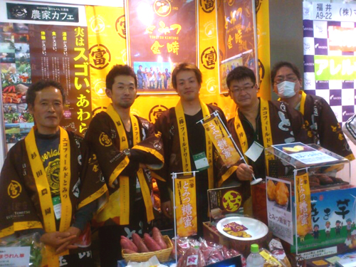 おそろいのハッピも着ると、とても目につきやすい展示ブースになります。