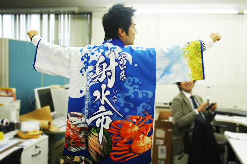 works 制作実績 グラフィックデザイン CIプランニング・オリジナルキャラ ノベルティ・オリジナルグッズ 展示会・イベント販促商品 Webデザイン メディア広告・宣伝 記念式典・イベント設営 制作実績射水市オリジナルハッピ・タペストリー 射水市オリジナルハッピ・タペストリー client / 射水市 date / 2012年3月15日