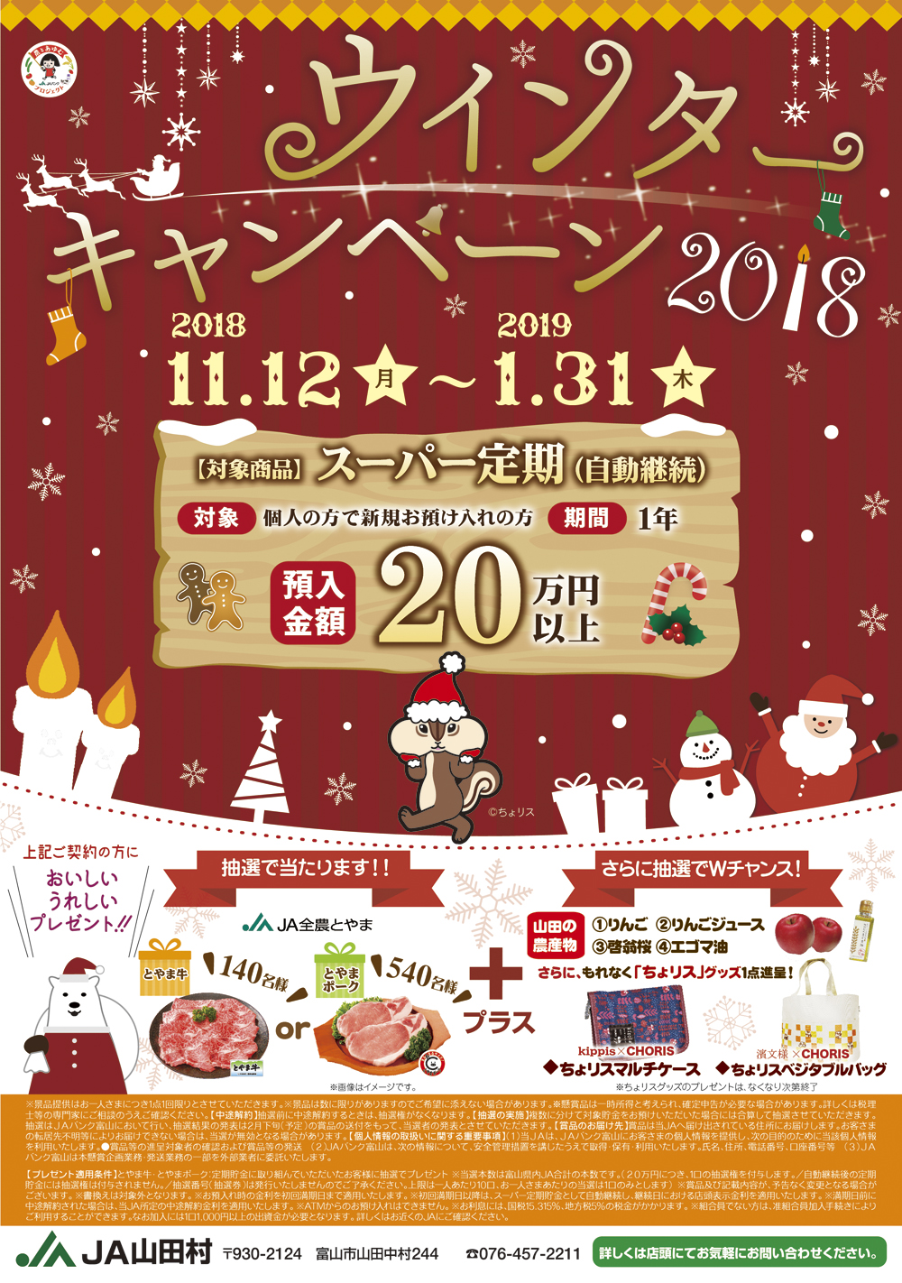works 制作実績 グラフィックデザイン CIプランニング・オリジナルキャラ ノベルティ・オリジナルグッズ 展示会・イベント販促商品 Webデザイン メディア広告・宣伝 記念式典・イベント設営 制作実績JA山田村 ウインターキャンペーン2018 チラシ JA山田村 ウインターキャンペーン2018 チラシ client / JA山田村