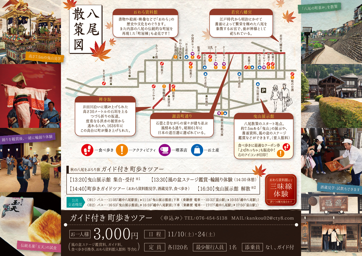 works 制作実績 グラフィックデザイン CIプランニング・オリジナルキャラ ノベルティ・オリジナルグッズ 展示会・イベント販促商品 Webデザイン メディア広告・宣伝 記念式典・イベント設営 制作実績越中八尾観光協会 ガイド付き 町歩きツアー 広告チラシ 越中八尾観光協会 ガイド付き 町歩きツアー 広告チラシ client / 越中八尾観光協会