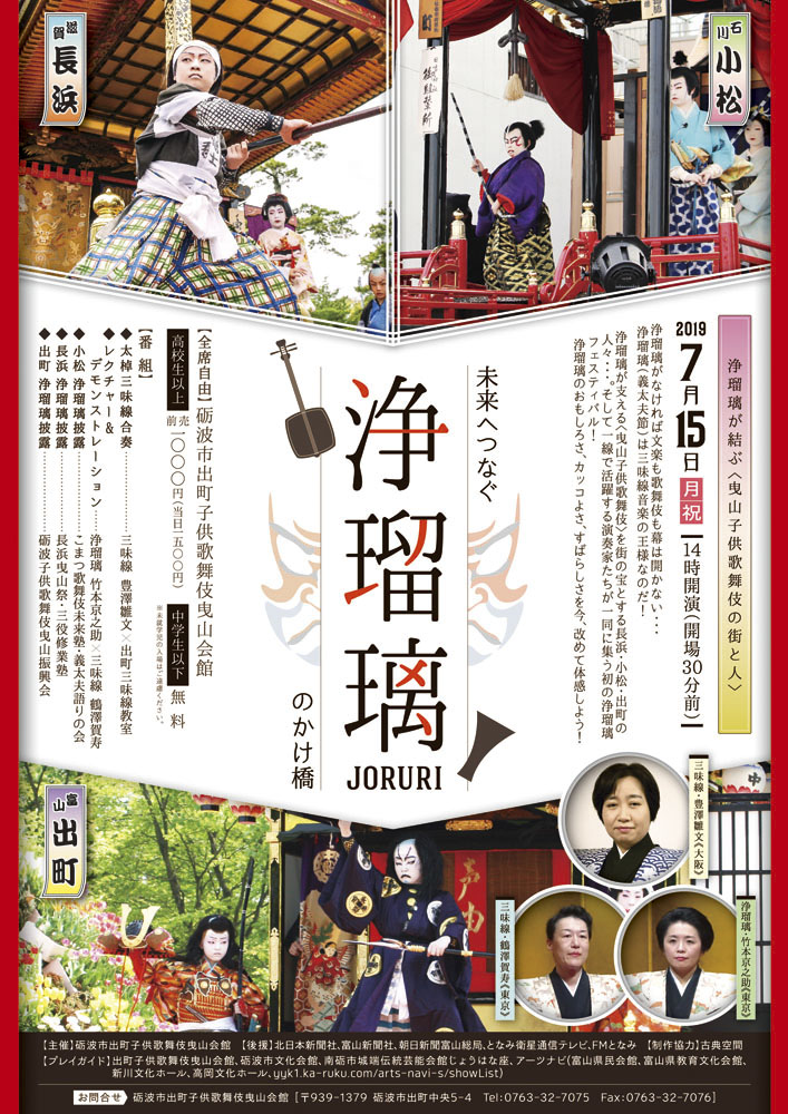 works 制作実績 グラフィックデザイン CIプランニング・オリジナルキャラ ノベルティ・オリジナルグッズ 展示会・イベント販促商品 Webデザイン メディア広告・宣伝 記念式典・イベント設営 制作実績砺波市出町子供歌舞伎曳山会館 / 「未来へつなぐ浄瑠璃のかけ橋」広告チラシ 砺波市出町子供歌舞伎曳山会館 / 「未来へつなぐ浄瑠璃のかけ橋」広告チラシ client / 砺波市出町子供歌舞伎曳山会館