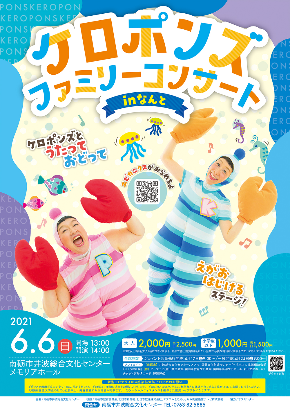 works 制作実績 グラフィックデザイン CIプランニング・オリジナルキャラ ノベルティ・オリジナルグッズ 展示会・イベント販促商品 Webデザイン メディア広告・宣伝 記念式典・イベント設営 制作実績井波総合文化センター様/ ケロポンズファミリーコンサート 井波総合文化センター様/ ケロポンズファミリーコンサート client / 井波総合文化センター