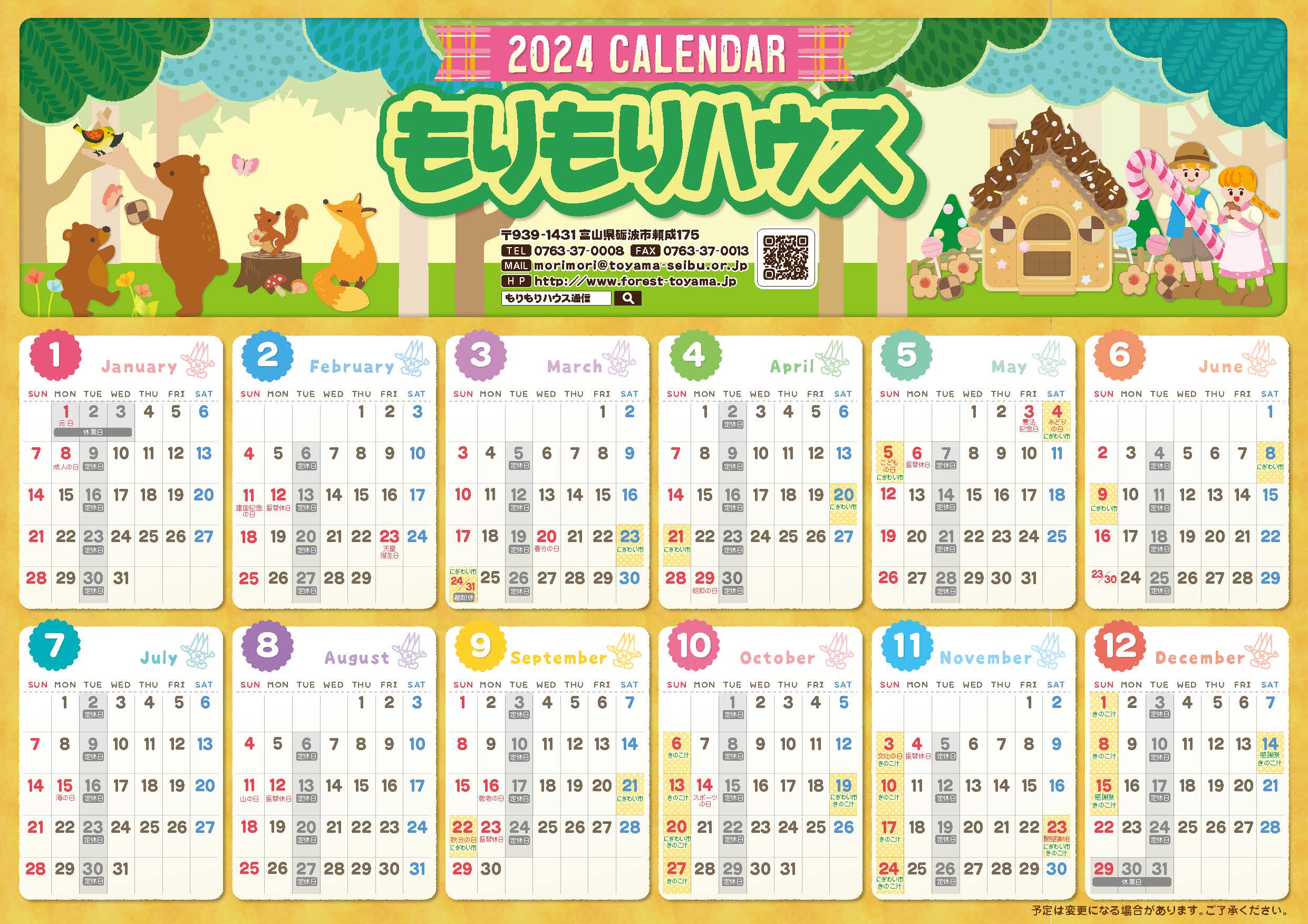 works 制作実績 グラフィックデザイン CIプランニング・オリジナルキャラ ノベルティ・オリジナルグッズ 展示会・イベント販促商品 Webデザイン メディア広告・宣伝 記念式典・イベント設営 制作実績もりもりハウス様 カレンダー2024 もりもりハウス様 カレンダー2024 client /
