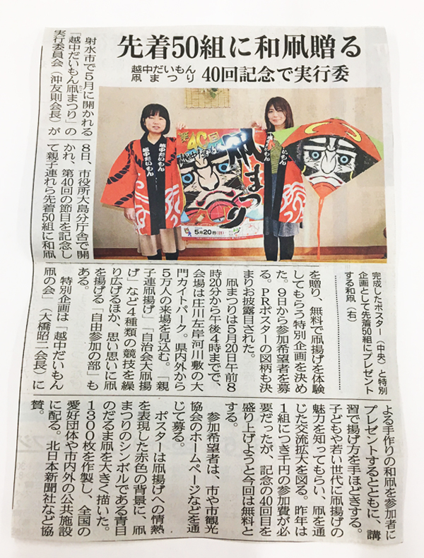 毎年射水市で行われる『越中大門凧まつり』のポスターがこの度JSコーポレーションが手がけさせていただけることとなり、先日北日本新聞にて凧愛好家様がたの元に配布され、公開されることとなりました。
