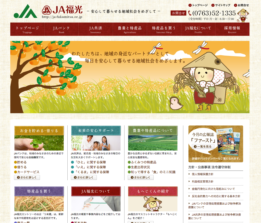 works 制作実績 グラフィックデザイン CIプランニング・オリジナルキャラ ノベルティ・オリジナルグッズ 展示会・イベント販促商品 Webデザイン メディア広告・宣伝 記念式典・イベント設営 制作実績カテゴリー: Webデザイン Webデザイン Web design 日本環境クリーン ホームページ制作 client / 日本環境クリーン株式会社 date / 2015年1月26日 伏木ポートサービス ホームページ制作 client / 伏木ポートサービス date / 2014年4月19日 ゆかだん屋 ホームページ制作 client / ゆかだん屋 date / 2013年10月20日 JA福光 ホームページ制作 client / 福光農業協同組合 date / 2013年7月11日 土屋営農組合 ホームページ制作 client / 土屋営農組合 date / 2012年11月1日 JAとなみ野 ホームページ・ネットショップ client / となみ野農業協同組合 date / 2012年8月1日 学校法人臼井学園 ホームページ制作 client / 学校法人臼井学園 date / 2012年8月1日 協同アルミ ホームページ制作 client / 協同アルミ株式会社 date / 2012年6月28日 株式会社島井 ホームページ制作 client / 株式会社島井 date / 2012年3月24日 (株)マックス・マックス加工 ホームページ制作 client / 株式会社マツタニ・マックス加工 date / 2012年1月17日 12